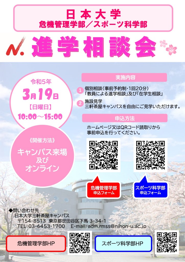 詳細は、日本大学スポーツ科学部HPよりご確認いただけます。