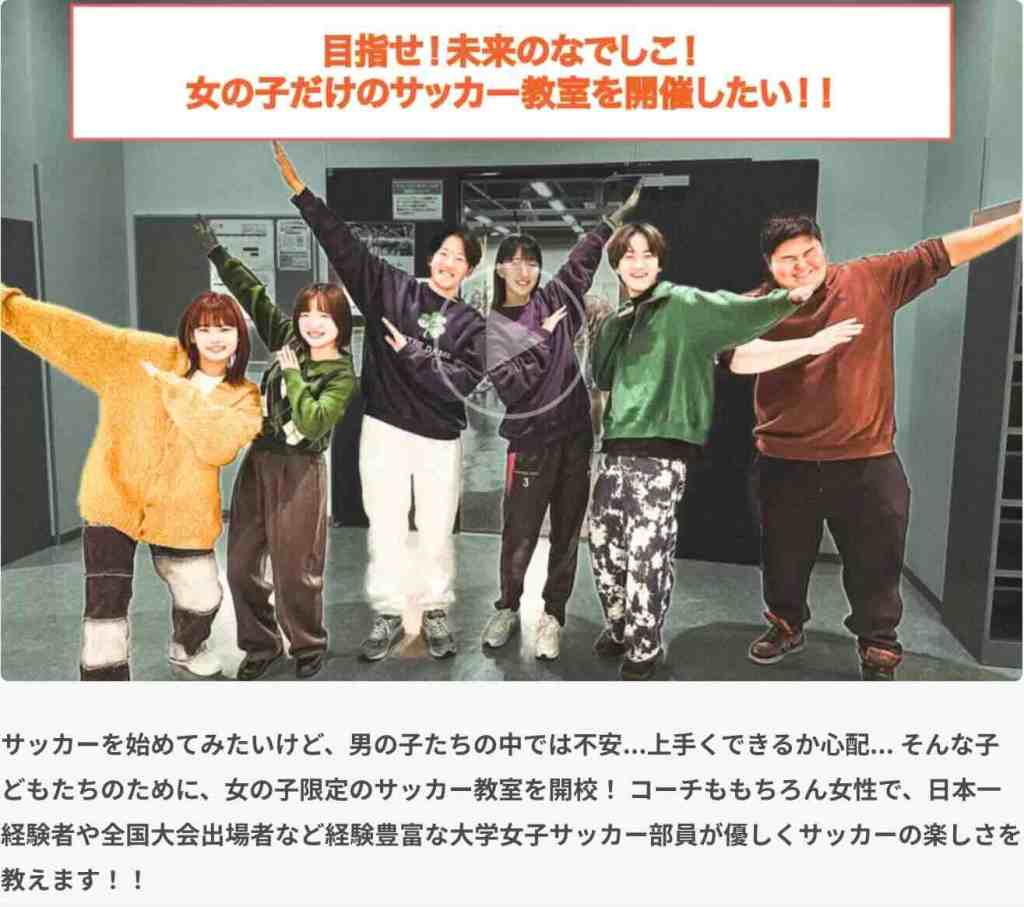 今年度の「スポーツマネジメント演習Ⅳ」の授業では、学生プロジェクトとして「目指せ!未来のなでしこ!女の子だけのサッカー教室」と題して、事業を実施することとなりました。