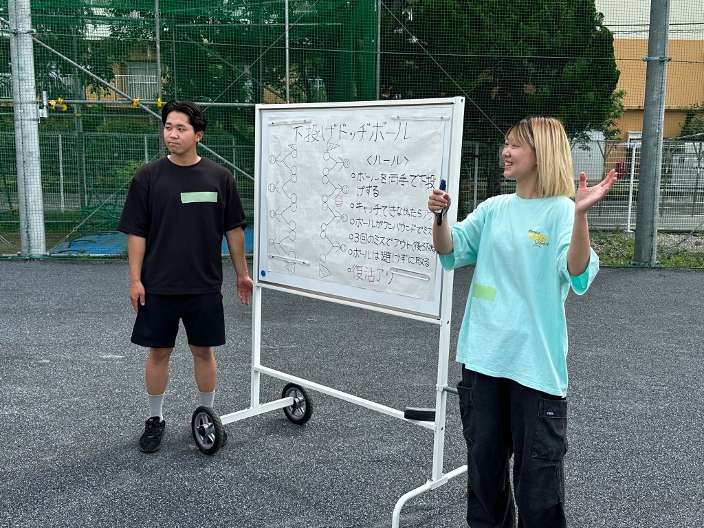 本学部の「アダプテッド・スポーツ演習(3年次開講科目)」では、対象者に応じたスポーツを創出することに取り組んでいます。授業内で受講生同士で提案し検討してきた中で、「下投げドッヂボール(Dodgeball with under throw)」と「ボールムカデリレー(Centipede Race using ball)」というスポーツを創ることができました。